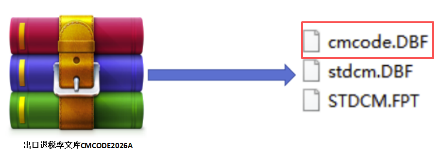 下载命名为出口退税率文库CMCODE2026A的压缩包文件,解压后得到最新版cmcode.dbf码库文件。