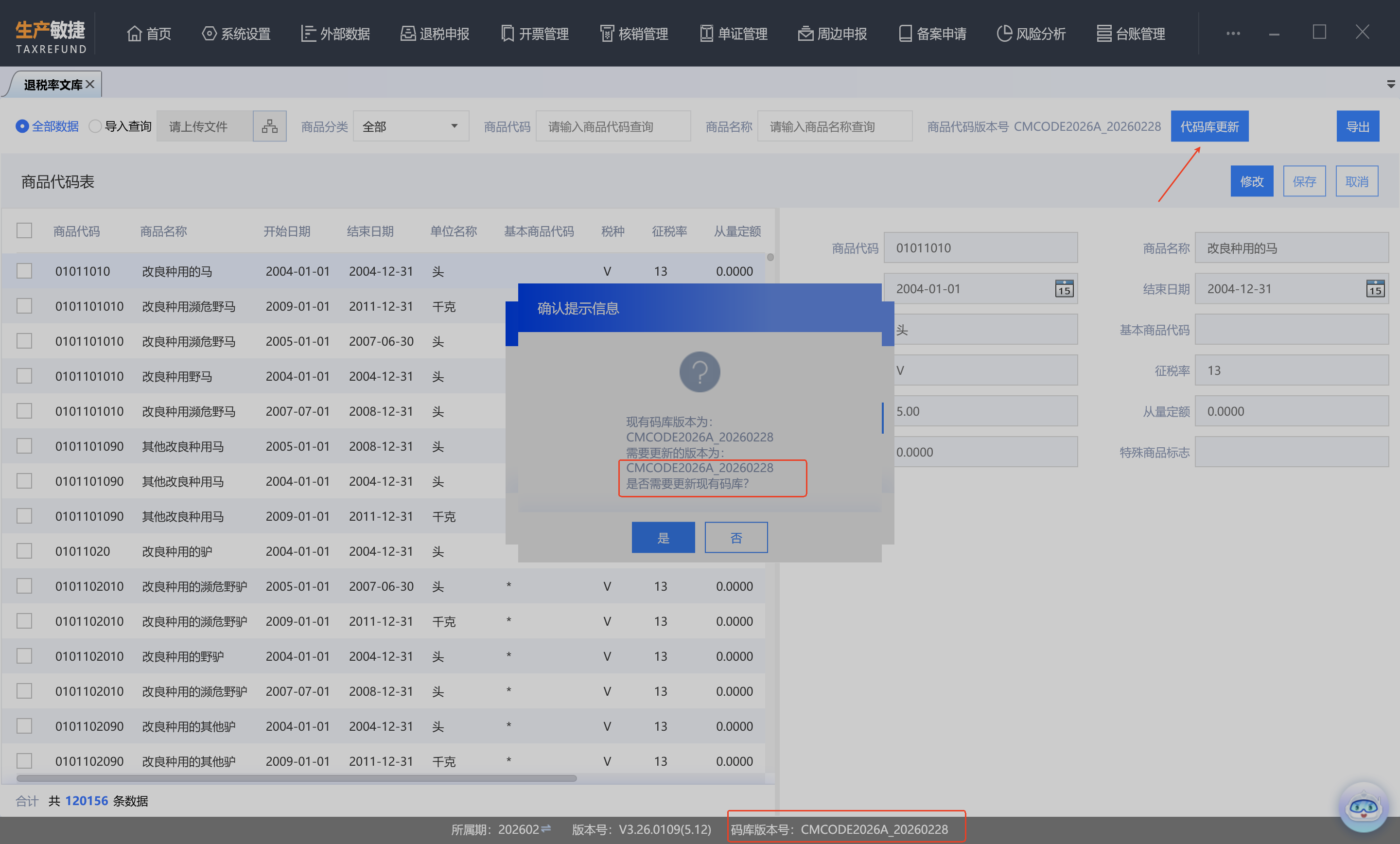 更新商品代码库(版本:CMCODE2026A)