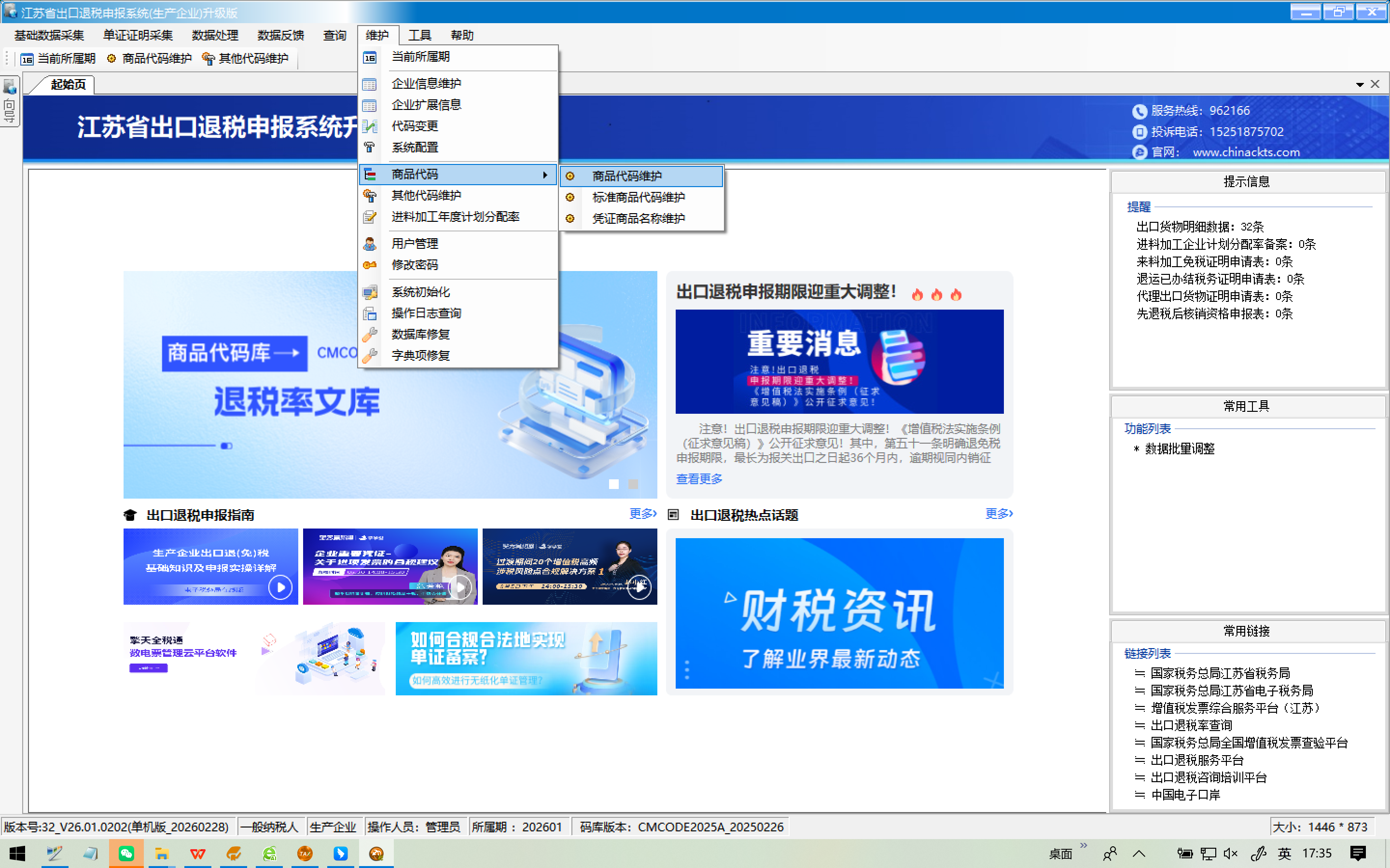 打开申报系统,自动升级商品码库,进入申报系统后查看是否更新成功。