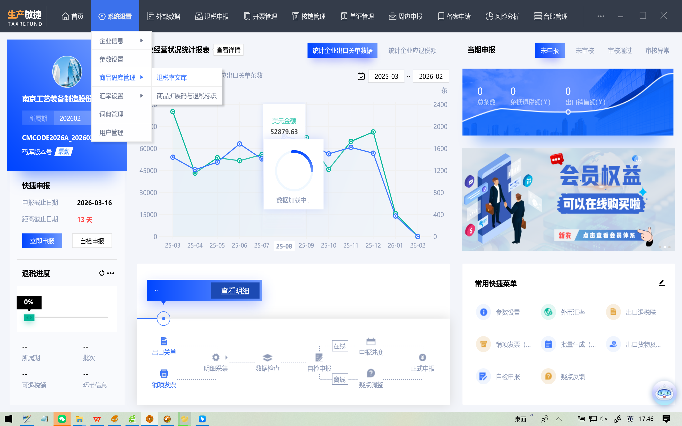 1、打开生产敏捷云申报系统,点击【系统设置】——【商品码库管理】——【退税率文库】