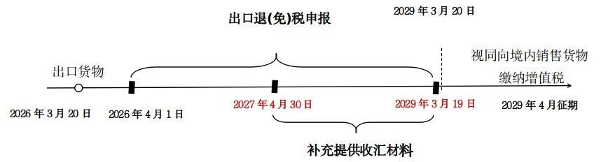 3.超过2029年3月19日未申报退(免)税,在2029年3月20日按视同向境内销售货物缴纳增值税、消费税。其中,属于内销免税的,仍可按照规定适用免税政策。