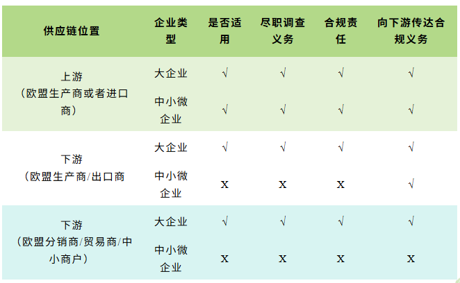 EUDR针对供应链环节与企业规模的差异,法规提出了不同的合规要求。具体如下: