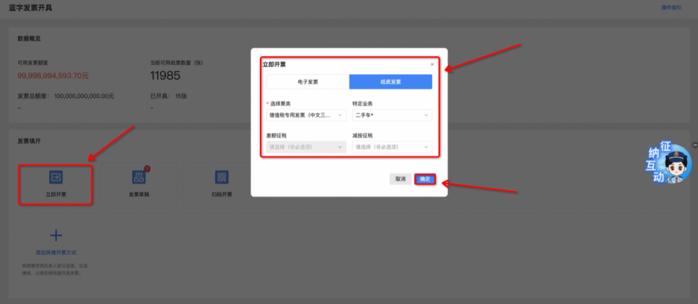 若企业适用一般计税方法的,可以开具专票或普票;若适用简易计税方法,按照3%减按2%征收增值税的,应开具普通发票,不得开具专用发票;如果放弃减税,按照3%征收增值税的,可以开具增值税专用发票。填开发票时需注意,【特定业务】选择“二手车*”。