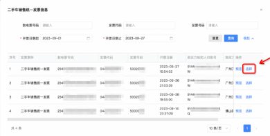 开具增值税发票需要关联二手车销售统一发票,找到该发票后,点击“选择”后正常开具发票。