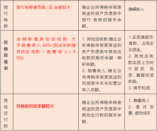 税务局对往来账目的预警主要有以下几类: