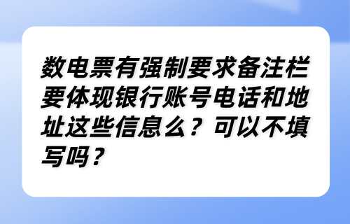 开数电专票省事了?地址银行信息能跳过吗?数电票时代,购买方的地址、开户行和账号这些“老信息”还必须填吗?能不能干脆不写?如果不展示在票面上,是否就不用填了?这些细节,直接影响你的发票合规性! 问:数电票有强制要...