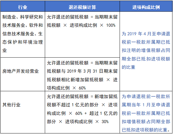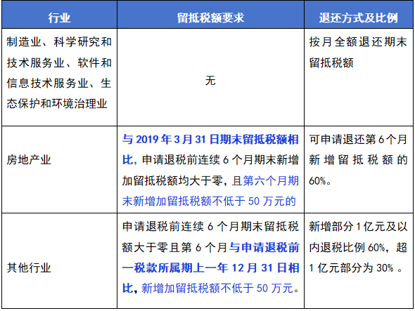 各行业的留抵税额要求: