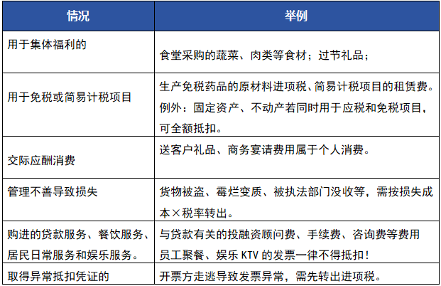 事项二:注意进项发票的实际用途,以下情况都要进项转出