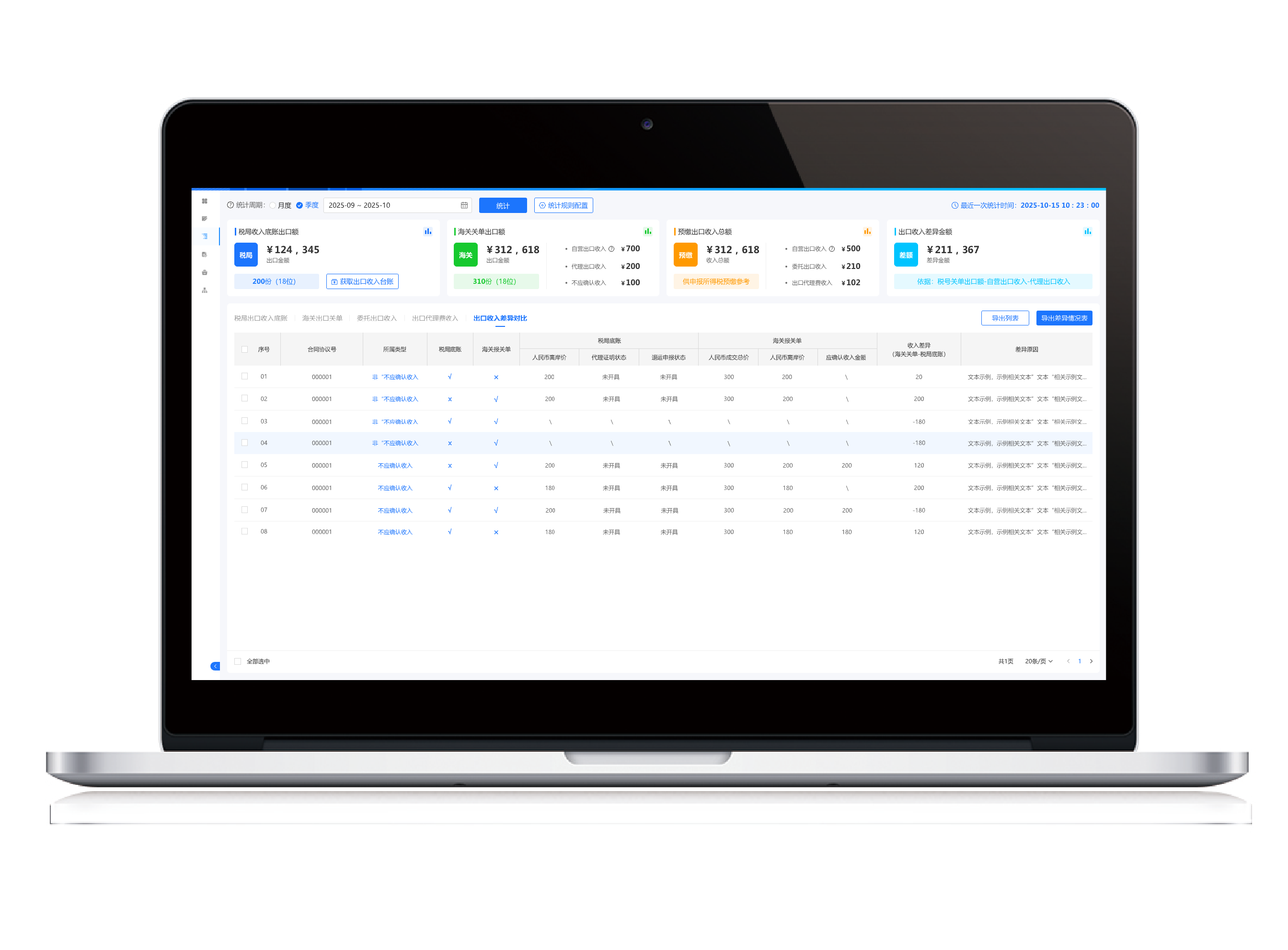 专为应对2025年所得税新政而生。自动精准区分您的自营、委托和代理出口收入,并一键生成官方要求的报表;同时,通过智能比对企业数据与税局底账,秒级定位并解释所有差异来源。从根本上解决了您“怕报错、对账难、效率低”的核心痛点,让您在享受“一键申报”便捷的同时,收获“数据准确、心中有底”的合规信心,轻松规避税务风险。